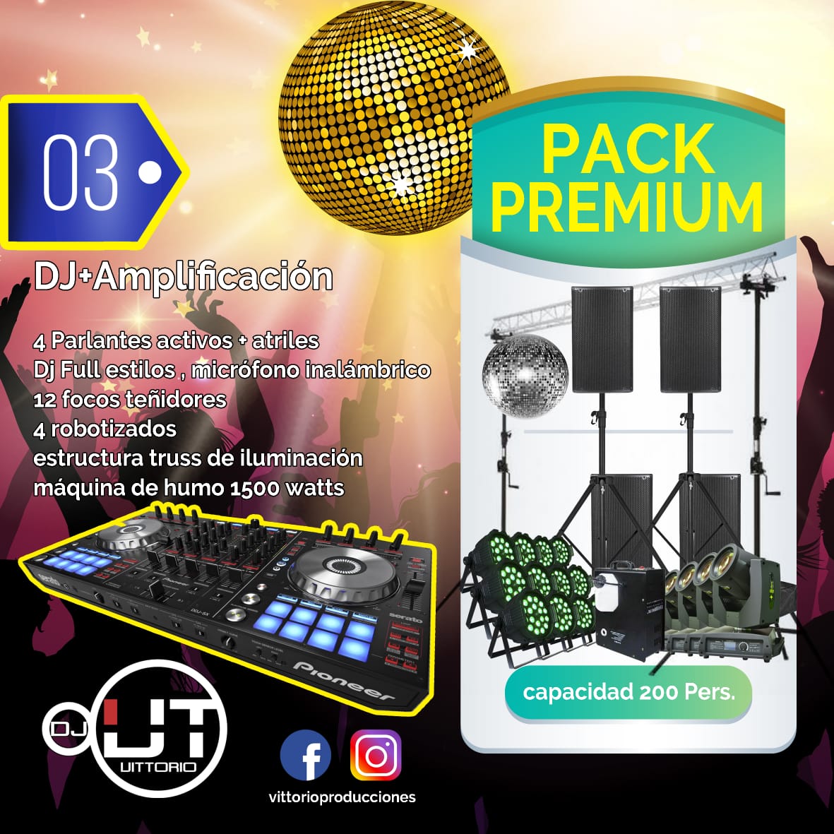 Permite que nosotros nos preocupemos de los detalles del evento, tú, solo disfruta de lo mejor en Música, Iluminación y Animación, disfruta junto a VITTORIO PRODUCCIONES.